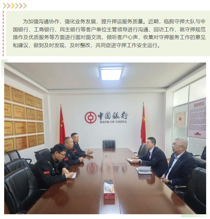 “聚焦客戶需求 提升服務質量”—臨朐守押大隊積極開展銀行客戶單位走訪工作